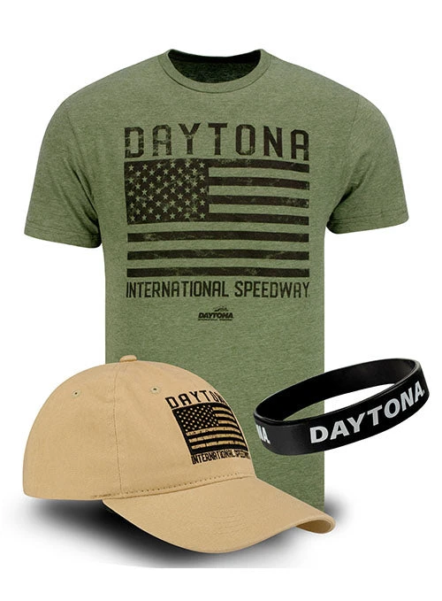 Show your patriotism with this Daytona hat/tee combo!